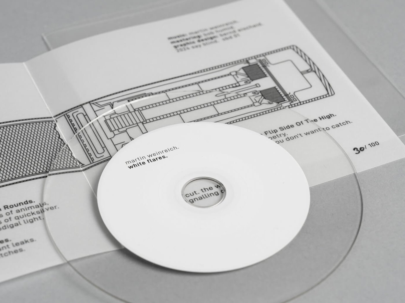 (12cm CD, 8cm bespielt, die äußeren 4cm sind transprente (unbesputtert), mit 4-Seiten Booklet aus Pergaminpapier)